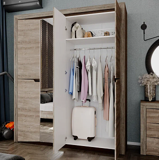 - Шкаф трехстворчатый с зеркалом ХЕЛЕН ШК-02 // белый,белый - Ш 1200 х В 2100 х Г 460 мм