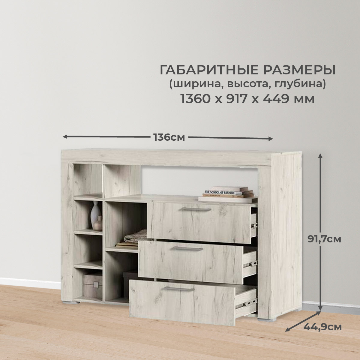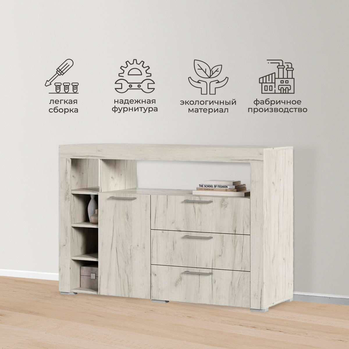 Комод ГРАНД К-1 // дуб крафт белый, дуб крафт белый