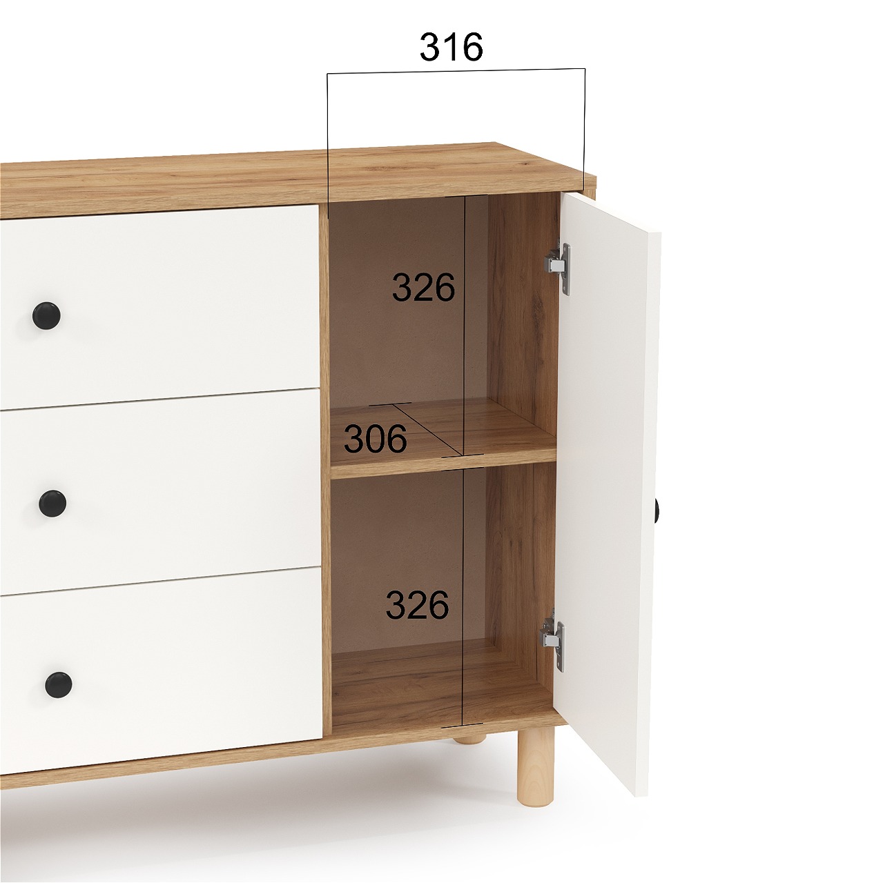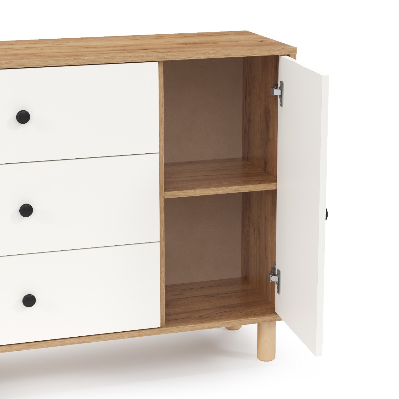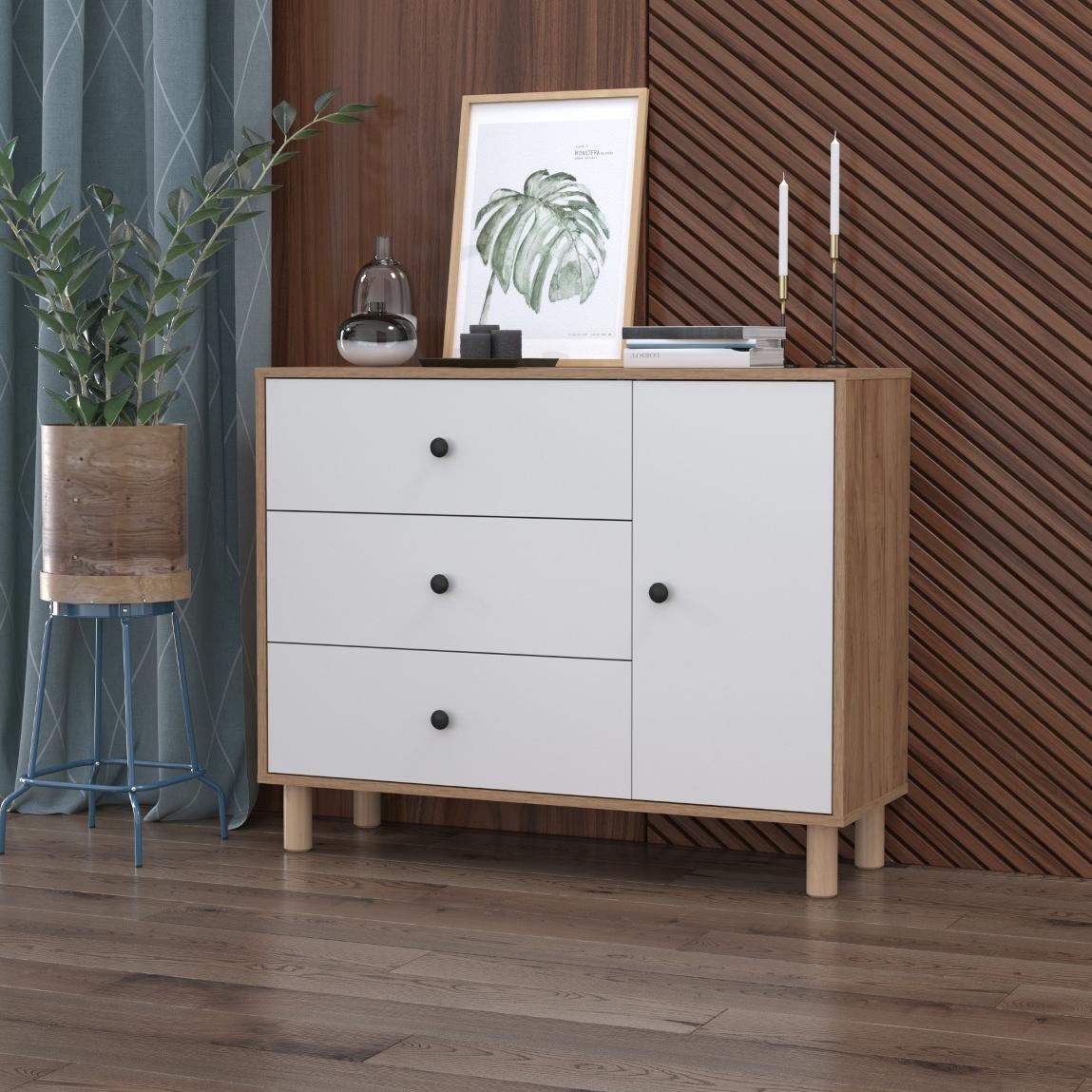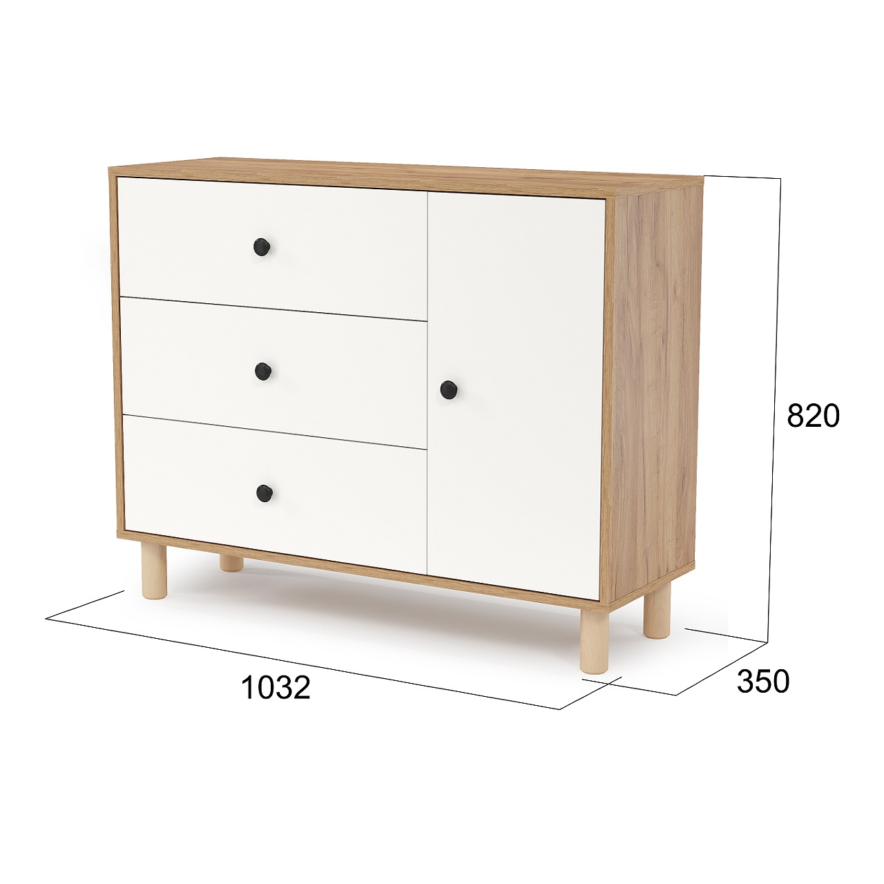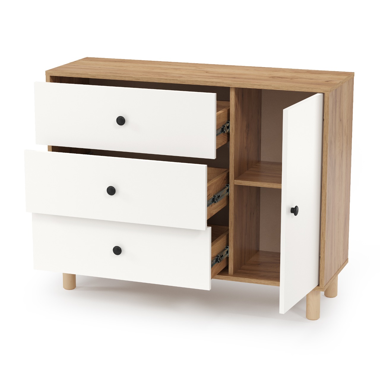 Комод с 3-мя ящиками и дверкой НОРД 996 // дуб крафт, белый