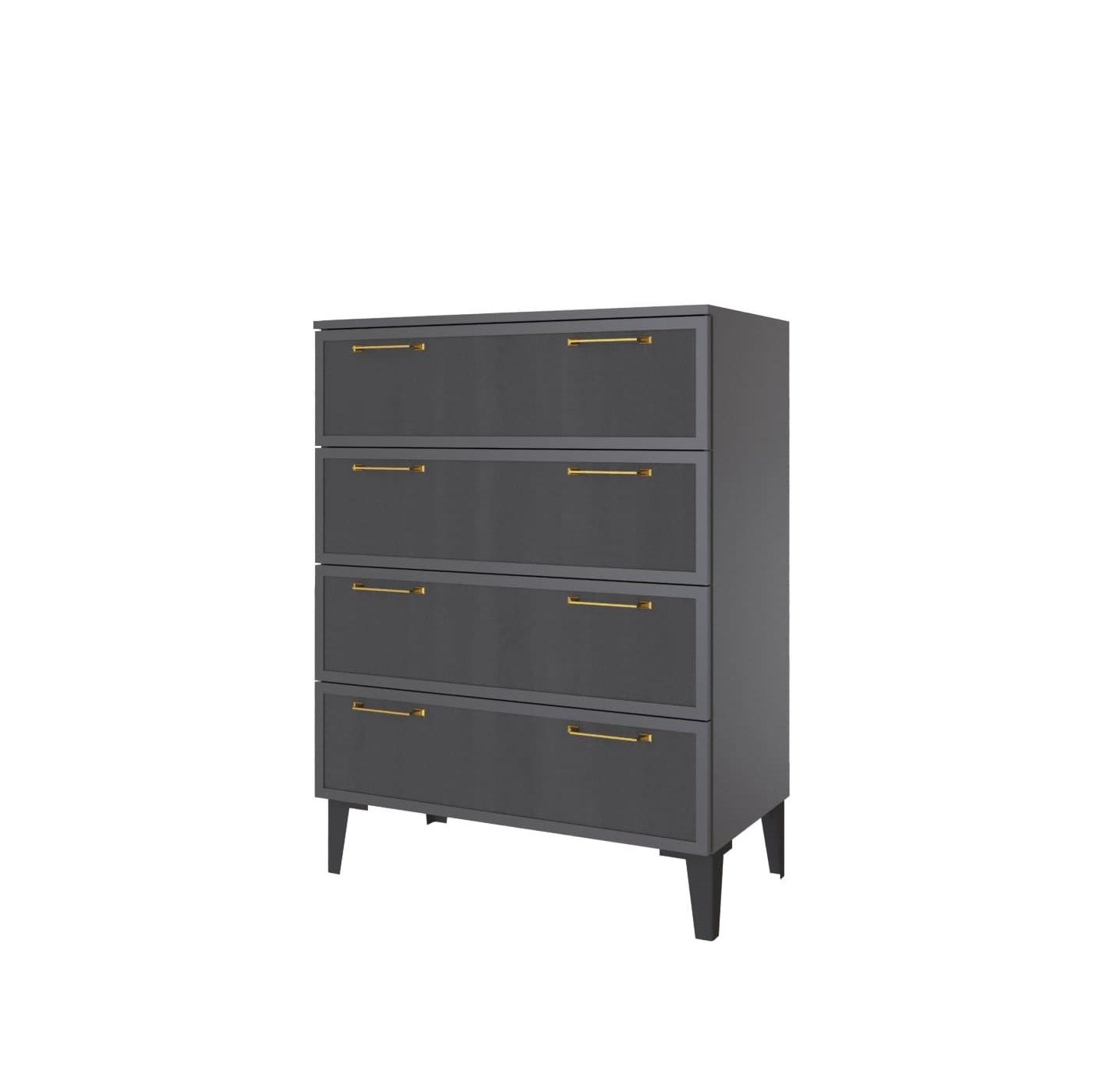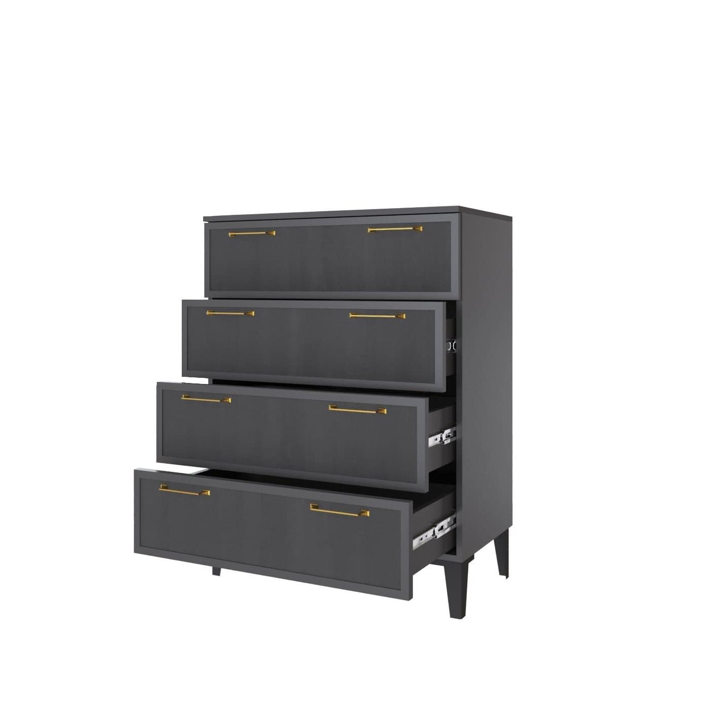 - Четыре выдвижных ящика на направляющих полного выдвижения с доводчиками обеспечивают удобное хранение одежды, белья и других вещей.