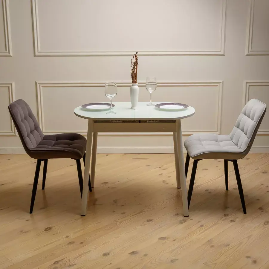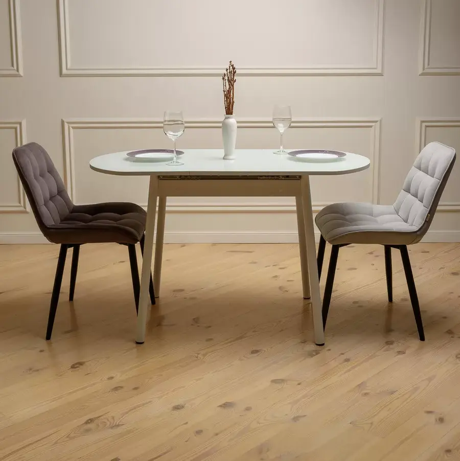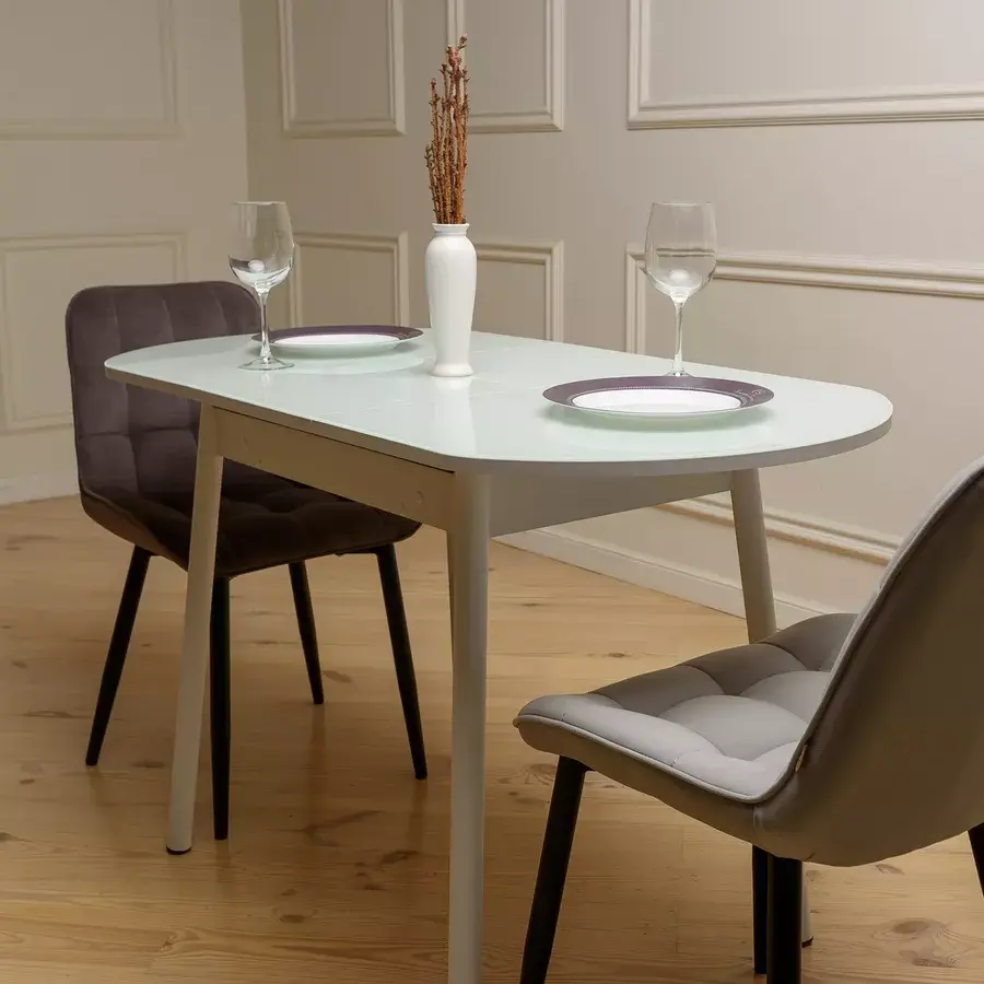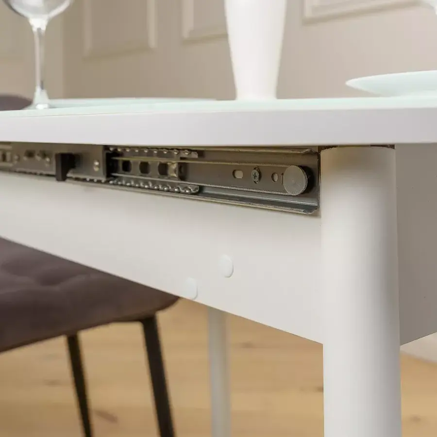 Стол обеденный раздвижной КЭЛЛИ-1 стекло с фотопечатью // белый, белый, кромка белая