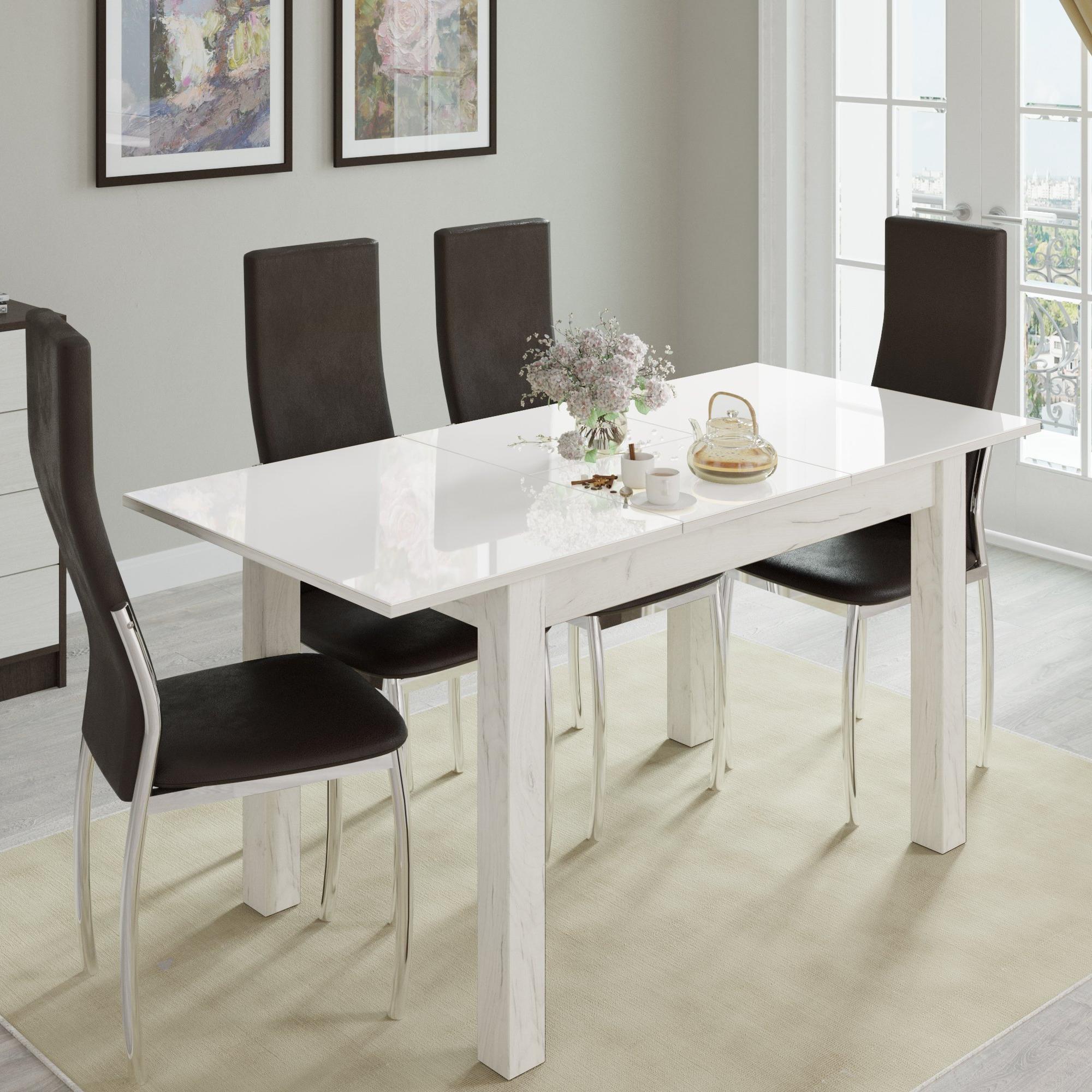 Стол обеденный БРУНО раскладной 1000х600 // дуб крафт белый, дуб крафт белый, лакобель белый