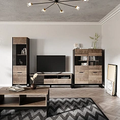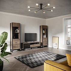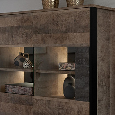 Шкаф-витрина двухстворчатый СТОКГОЛЬМ // дуб гранж песочный,железный камень